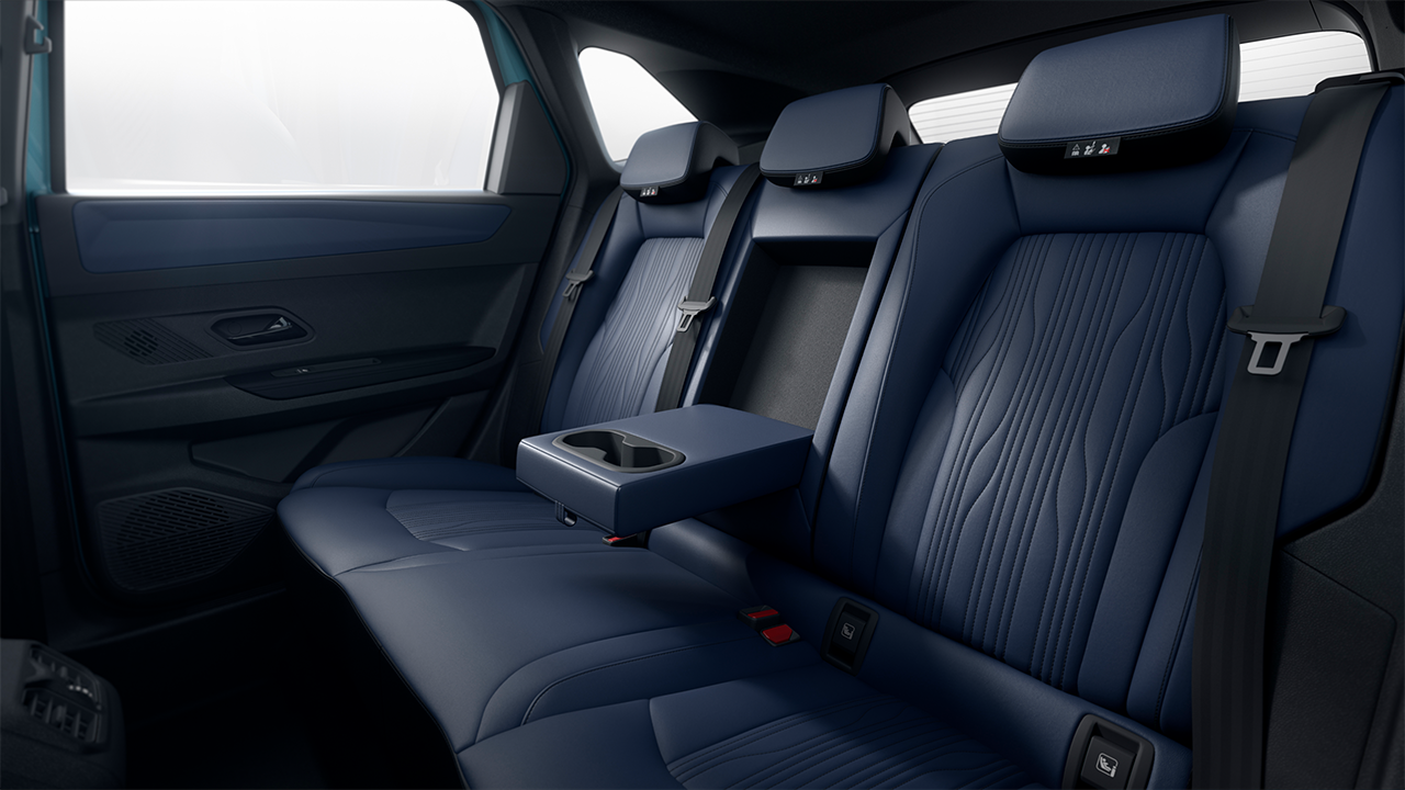 Confort Carga inalámbrica de smarthphones, 48 colores de ambient lighting interior, consola central elevada con espacio refrigerado, 243 mm de espacio para tus rodillas, apoyabrazos trasero con portavasos integrado.