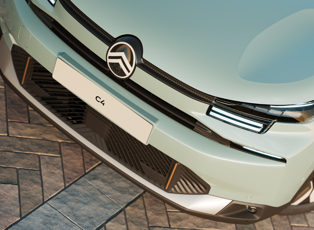 El nuevo C4 híbrido redefine la presencia en las calles con un diseño exterior más ancho y moderno, donde el nuevo logo Citroën se integra en una parrilla vertical elegante, conectada a los faros delanteros y luces diurnas LED
